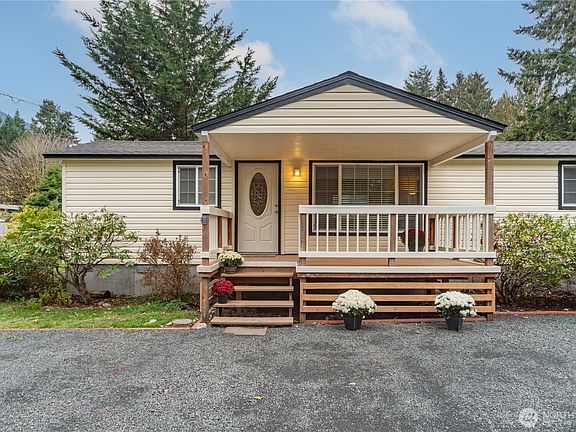 Remodeled 2-bedroom manufactured home. Inside this well-kept home, you'll find a roomy open floor plan with vaulted ceilings & an inviting atmosphere. Spacious kitchen has generous counter space & easy access to the back deck—perfect for entertaining or enjoying your morning coffee. The main bedroom includes a full bath, while the 2nd bedroom offers flexibility for guests, an office, or hobbies. Enjoy the large partially fenced yard & two front decks—ideal for gatherings. A 1.5-car garage with an attached 143 sf shop provides ample space for parking, storage, & projects. The large driveway accommodates guests or recreational vehicles with ease. Near Dosewallips State Park, Pleasant Harbor Marina, & the beauty of the Olympic National Forest
