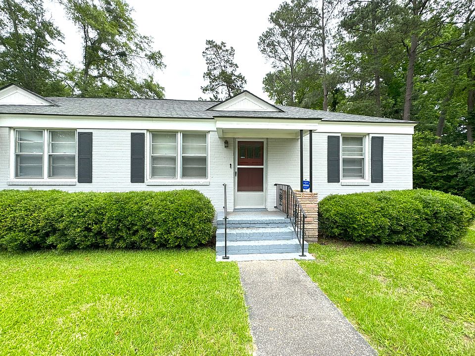 Minutes to the heart of Sumter! This unit is move in ready! Hardwood floors and plenty of natural sunlight throughout. Large living room with ceiling fan. Eat in kitchen features vinyl flooring, plenty of cabinet space, stove, fridge, and washer/dryer connections. Three spacious bedrooms with overhead lighting and ample closet space. Hall bathroom has tile surrounding the tub, vanity and toilet. Covered front porch. Covered back porch. Off street parking behind the property. No smoking. No pets please. Central HVAC. Tenant is responsible for water, sewer, trash, electricity, and gas. Lawn care is included. Minutes to the heart of Sumter, the hospital, and so much more! Available Now!