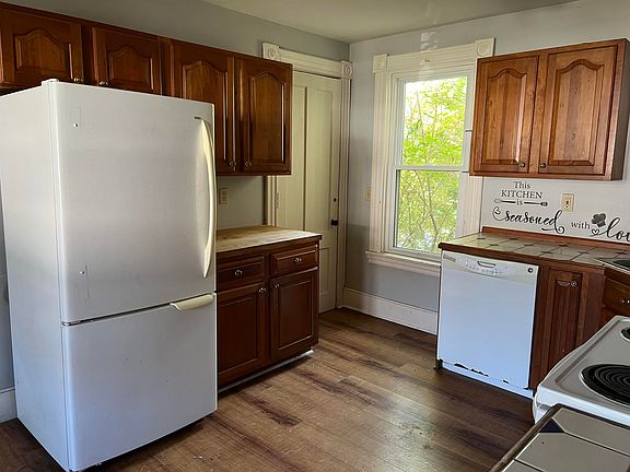 4 large bedrooms, 1 full and 1 3/4 bath with soaking tub. A couple extra smaller rooms to be used for your liking. Lots of charm in this Victorian home. Original built-ins, hardwood floors, woodwork, functional pocket doors, stained glass window toppers, magnificent staircase, marble fireplace are just a few of the original charms this lovely home has to offer. Washer and Dryer hookups are on the first floor. Front and back staircases. Newer oil furnace and water heater. Pellet stove. .42 acre village lot near schools playground, park and shopping. Large barn for extra storage or your toys in the back yard.