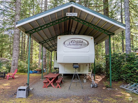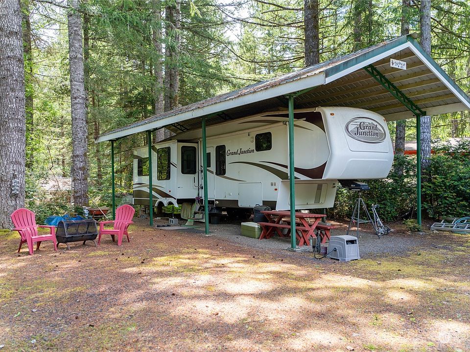 Welcome to your own private 'turn key ready' retreat nestled between the alluring Hood Canal and Olympic Mountains! This property is equipped with water, power, and septic. Also included is a fully equipped spacious RV that has been covered and well cared for over the years. The RV carport is built to last and withstand all the elements. The clubhouse with a heated pool is right up the road within walking distance and you have a private lake and community beach along the canal. Whether you're seeking a weekend getaway, a summer retreat, or a year-round sanctuary, this property has everything you need to relax and rejuvenate!