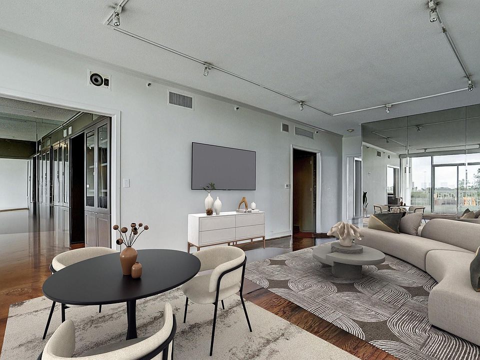 Open floor planTwo balconiesMotorized solar shadesGorgeous wood floorsCustom built-insTree-top viewsLarge walk-in closet