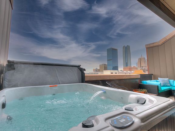 Four Story Brownstone with awesome downtown OKC views - The ultimate in downtown living is right here! Check this unique FULLY FURNISHED turn key ready PRIVATE HOME w elevator servicing 4 floors, 4th floor balcony with hot tub, oversized 2 car garage, 4 fireplaces, 4 zone geothermal with nest thermostats, new MOTORIZED blinds that all together make this home comfortable & easy to live in. High end appliances, plus ice machine.