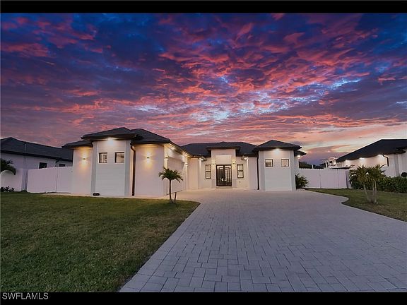 Welcome to this stunning 4-bedroom, 3-bathroom pool home in the thriving Northwest Cape Coral area. Designed for both luxury and function, this home offers an impressive open floor plan, a side-load 2-car garage, and exceptional attention to detail throughout. From the moment you arrive, the home’s tile roof, high-impact windows and doors, and sleek metal fencing set the tone for modern living. Step inside to find 8-foot interior doors, deluxe porcelain tile flooring throughout, and a spacious, light-filled layout perfect for entertaining or relaxing in style. The gourmet kitchen is a showstopper, boasting acrylic cabinets, quartz countertops, an oversized kitchen island, and stainless steel appliances—perfect for family meals or gathering with guests. The living room features a contemporary fireplace and opens effortlessly to the expansive lanai. Enjoy true Florida outdoor living with a fully equipped summer kitchen, heated pool, and outdoor shower. Automatic hurricane shutters on the lanai add an extra level of security, and the fenced yard is ideal for children, pets, or storing your boat on the side of the home. Additional features include a sprinkler system, a laundry room with quartz counters, washer, and dryer included. Best of all, this home is not in a flood zone, and city water and sewer assessments are in and PAID—a major bonus!Located close to shopping, restaurants, and everything Cape Coral has to offer, this home blends luxury, comfort, and peace of mind. Schedule your private tour today and experience this exceptional home for yourself!