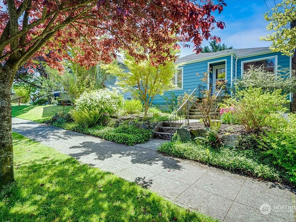 Ideally located just around the corner from all of the boutique shops and restaurants in Phinney Ridge, this light filled home delights at every turn. Original detailing combines with tasteful updates. Inviting spaces are wrapped in oversized picture windows that frame views of the lush Northwest surrounds. The main floor impresses with two graciously sized bedrooms, a serene full bath, and a cozy living room with fireplace that flows seamlessly to the dining room and kitchen. Downstairs the impressive third bedroom awaits as well as a mud room, shop and ample storage. All of this and much more is surrounded in beautifully landscaped grounds. Blocks to Green Lake and just minutes to downtown Seattle. Your storybook home awaits!