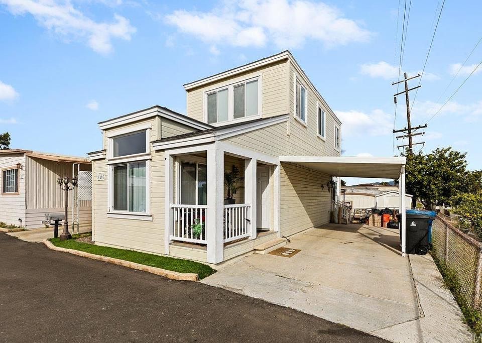 Nestled in a prime location within the community, this custom-built, two-story mobile home is in need of a little TLC, boasts views of the South Bay and an abundance of natural light, offering a unique sense of privacy. The layout is perfect for easy access to the master bedroom on the lower level, while two additional bedrooms reside on the second floor. This cozy home features three beds, two baths, vaulted ceilings, a large living room, and a convenient laundry room. The spacious master suite includes yard access, complemented by parking for two cars and a relaxing front porch. Located in the well-maintained Don Luis Estates-one of Chula Vista's finest all-age communities-residents enjoy amenities like a swimming pool, clubhouse, and beautifully landscaped surroundings, with convenient access to shopping, dining, highways, parks, and schools.