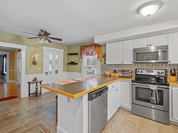 This stunning New Englander-style home boasts three bedrooms and one bath. Efficiently designed kitchen with ample storage and counter space, stainless steel appliances, breakfast bar and and a convenient breakfast nook. The formal dining room has beautiful maple flooring, a built-in corner hutch and French doors that lead to a delightful three-season porch. Inviting living room with pine flooring radiates hospitality and charm. First floor bedroom or may be a perfect home office. The 3/4 bath, thoughtfully renovated with a tiled shower, offers easy access from both the dining room and hallway. Upstairs, you will find the primary bedroom, complete with generous closet space, and an additional bedroom with two closets. An extra "bonus" room provides versatile space for a home office or an additional bedroom, if needed. The level back yard and deck offer the perfect refuge to relax and unwind. Meticulously maintained and nicely renovated, move-in ready, this home leaves nothing to be desired. It also presents an opportunity for an in-home business (subject to town approval). Conveniently located within walking distance to baseball fields, walking trails, community center, and just a short stroll to downtown. Great commuter location, I93 N and S nearby. Close to all Central NH and Lakes Region amenities. Don't miss out on this exceptional home!