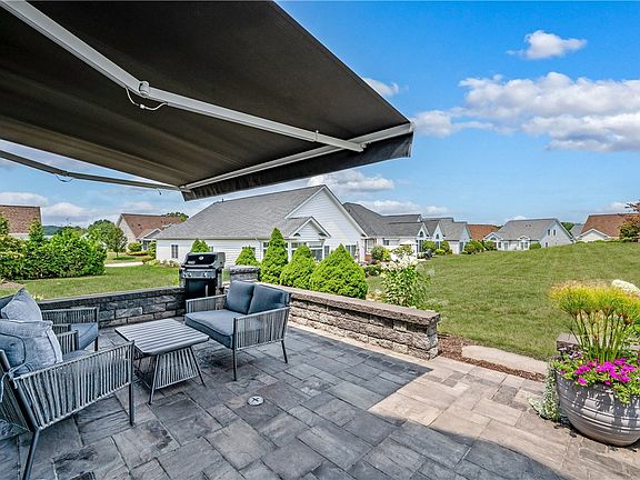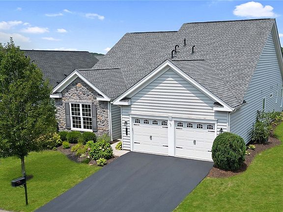 One Level Maintenance Free Single Family Home in Desirable ”Sewickley Ridge” 55+ Active Lifestyle Community! Rare Custom Designed Floorplan + Sun Room & Paver Patio Additions.Packed w/ Elegant Upgrades* Enter the Home & Find An office/3rd Bedroom Followed by a Large Dining & Living Room Decked out in Waynes Coating & Crown Molding*7” wide Beautiful Hardwood Flooring*Soaring Vaulted Ceiling*Chef’s Kitchen w/ Granite,Oversized Island,Upgraded Yorktown Cabinetry,Farmhouse Sink,Backsplash. Large 2nd Bedroom w/ Wood Accent Wall.Huge Great Room w/ Floor to Ceiling Stone Fireplace.Enjoy Coffee in the Breakfast Nook or Relax in the Added Sunroom.Rear Paver Patio w/ Sitting Walls covered by an electric awning.Master Ensuite w/ Tray Ceiling,2 walk-in closets, Bathroom w/ Double Vanity, Tile Shower w/ Frameless Glass door.Finishd Attic w/ Stairs for Storage Above Attic* Prime lot backing to green space & near the 8,000 sq ft Community Clubhouse, pool, gym, pickle ball cts and so much more!