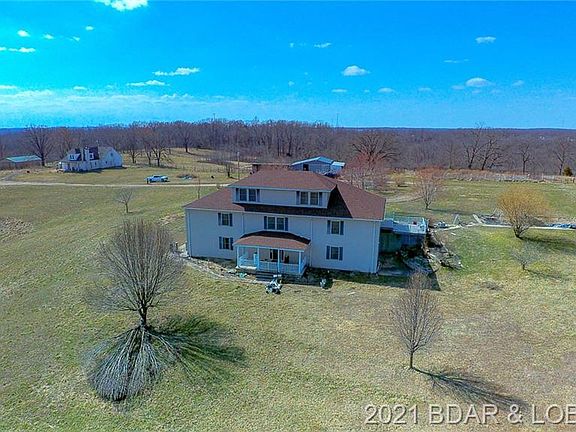 Farm land is almost impossible to find and this unique property has just hit the market. Just a few miles off of 52 towards Tuscumbia and only 1 mile down gravel. The private drive leads up onto your own private retreat. The home is massive and boasts 7 bedrooms and 9 bathrooms. 80 ACRES m/l gives you privacy from everything except the wildlife that abounds on the property. Deer season from your composite deck is real life here. Acreage is aprox 60 pasture and 20 wooded. There is a natural spring centrally located on the property with crystal clear water flowing 24-7. Sucker rod corrals with head shoot, fenced and cross fenced, automatic water's, one pond. 45x45 Machine shed. 30x48 metal building, huge hay barn with more covered storage. There is also another home on the property that needs work but would make a great mother in law home or guest home. There are several other outbuildings on this property.