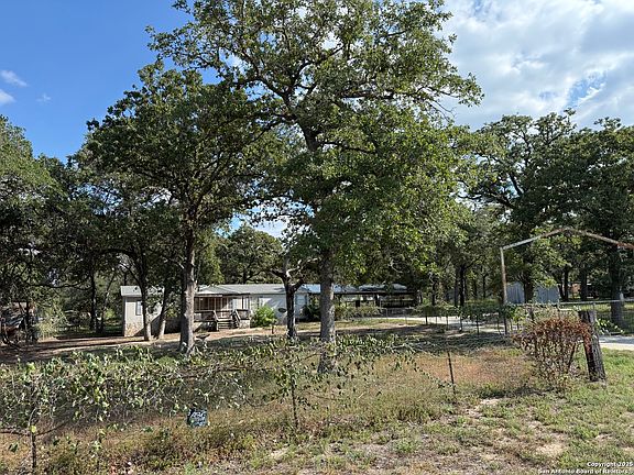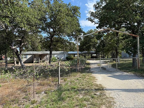 Great investment opportunity! Mobile home on .82 of an acre with large towering trees,close to town and in La Vernia School District. Large attached carport with metal roof and detached storage building. Completely fenced with front gate as well. Home needs lots of TLC and is sold as is.