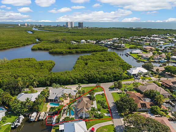 Experience refined coastal living at this Tudor style gem in prestigious Queens Cove. Lovingly designed with old world charm, this waterfront estate features two luxurious master suites, elegant spiral staircases, and a hidden walk in closet for that touch of intrigue. The spacious pool, raised hot tub, and manicured patio create a perfect indoor-outdoor flow ideal for entertaining or enjoying year round sunshine. Boaters and ocean lovers will adore the private dock and boat lift just minutes from open water. Spend mornings kayaking scenic waterways, lounging in your sun filled living areas accented with plantation shutters, or unwinding in the quiet seclusion that only island life can offer. Schedule your showing today. Welcome home.
