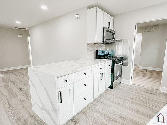 Spring into a NEW HOME! This fully renovated, sprawling ranch boasts 4 sizable bedrooms and 2 bathrooms on a large lot. There's enough space for EVERYONE! NEW flooring, FRESH, neutral painting + BRIGHT LED and Recessed lighting throughout! When you enter the home you'll immediately notice the open living room with a beautiful bay window and tons of natural lighting. The custom eat-in kitchen has NEW Stainless Steel appliances, NEW soft-closed, Shaker-Style white cabinets with white and gray Quartz countertops AND features a wonderful waterfall design! The Primary Suite has a large closet and a full private bath. The other 3 bedrooms are spacious with comfortable closets as well. HUGE family room in the rear of the home with a large skylight and a sliding patio door that leads to your freshly painted patio. The backyard is completely fenced in; ready for pets and backyard barbecues. A home warranty is included for the buyer's peace of mind. Once you see it, you'll be ready to BUY! Minutes to schools, parks, shopping, dining, public transportation and close to 294/394/80