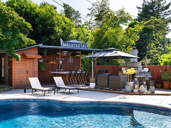 Discover this impeccably designed 4-bedroom, 3-bathroom home, offering 2,292 sq.ft. of sophisticated living space in the Sought-After Dominican/Rafael Gardens Neighborhood. The open-concept living and dining areas are bathed in natural light, featuring modern finishes and a gourmet kitchen with high-end appliances. Step outside into your personal garden oasis, home to meyer lemons, a grafted cherry tree, apricot, and tangelo trees, as well as ample space for growing your own vegetables and herbs. The beautifully landscaped yard, adorned with roses, hydrangeas, lavender, and Mediterranean grasses, provides a peaceful retreat. The crown jewel of this property is the newly renovated resort-style backyard, an exclusive haven perfect for both relaxation and entertaining. Located directly across from Coleman Elementary School and just steps from the Dominican University, this home offers family-friendly convenience within walking distance of downtown shops, restaurants, and scenic hiking trails. Don't miss your chance to make 121 Rafael Dr. your new home!