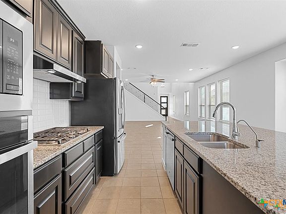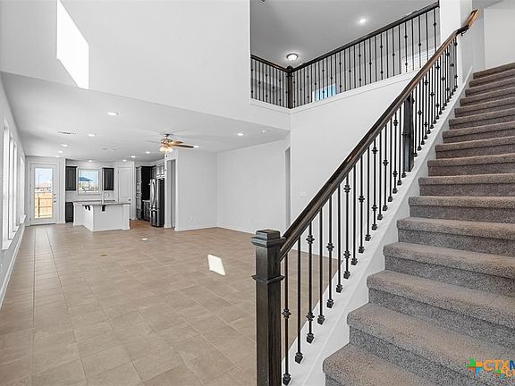 Located in desirable Santa Rita Ranch, this home features soaring open-to-below ceilings that create an airy, grand living space. Open-concept living flows seamlessly to the extended patio, your canvas for backyard entertaining. The main-floor primary suite offers convenience, while the spacious upstairs loft is perfect for a game room, media space, or guest retreat. Enjoy the expansive backyard with partial patio cover and no rear neighbors for added privacy. Santa Rita Ranch offers award-winning amenities including resort pools, fitness center, pickleball courts, and hundreds of acres of trails and parks. Washer, dryer, and refrigerator convey.
