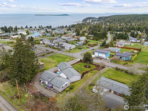 Experience the best of PNW in the Cape George community! This stick-built, single level, 2 bed, 2 bath home comes with dramatic sunsets. Never been on the market, built in 2009, this home offers dramatic views. Inside, large windows take in the natural light and open floor plan. An entertainer's kitchen with stainless steel backsplash and custom cabinets throughout. Wonder through the sunroom to the oversized garage for hobbies, extra storage, and a sleeping loft. It easily fits two cars and exits to your gardening beds and greenhouse. Backing up to public land, endless backyard scenery. Exclusive amenities: private marina, pool, fitness, and beach access. Minutes from downtown, don't miss the rare opportunity to own a turnkey home.