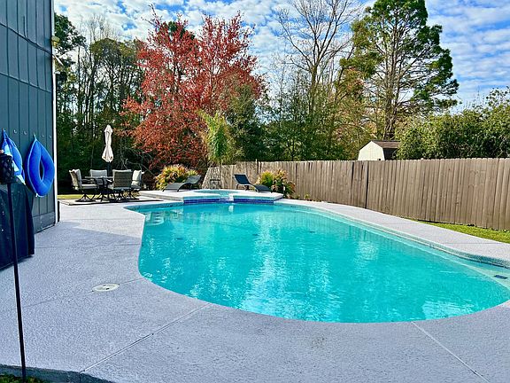 Welcome home to this updated, immaculate, 3 bedroom, 2.5 bath property located on a cul-de-sac in Lake Jordan. There are so many features here that you'll love! The outdoor space is truly a 10 out of 10! Enjoy the privacy of having an in-ground pool right in your own fenced backyard. The back screened porch is complete with cabinets and a bar top, perfect for hosting those outdoor parties. You can fish off the 100ft dock or launch your kayak or paddle boat right from your backyard. There's a storage shed and additional parking pad for an RV, as well as a 30 AM RV plug already installed.