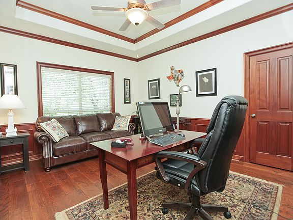 Beautiful Home on 1 acre with tons of trees. Great curb appeal with circular drive. 3 bedrooms down plus 4th bedroom upstairs with game room and a fireplace. Triple crown molding, hardwood floors and mahogany paneled office. Chefs kitchen with granite and custom cabinets. Sub-Zero fridge. 3 car garage. Lots and lots of storage. Fabulous Laundry room that has a shower for dogs, extra cabinets, room for a fridge, and a sink! This is a great house!