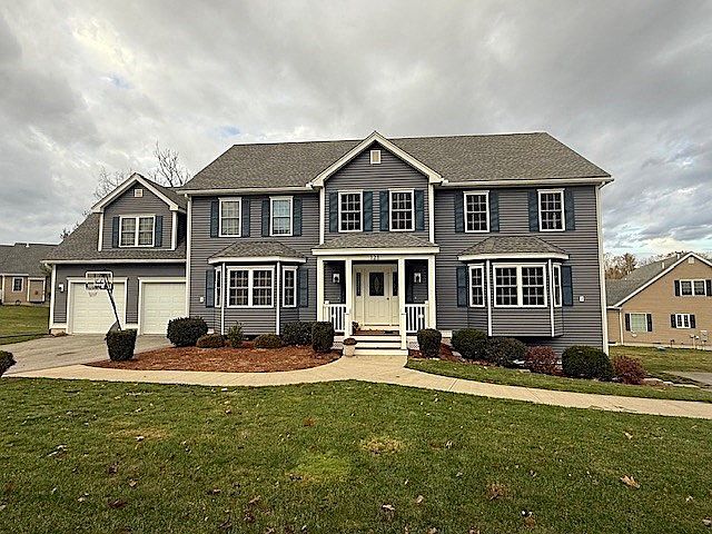 Spacious 3 bed, 2.5 bath, duplex unit available for rent in the sought after Robin Hill Estates of East Groton. Centrally located with easy access to I-495 & Rt 2, T-station, The point, Groton center, Cornerstone Square, and more. Lovely neighborhood setting lined with sidewalks and 400+ acres of conservation land accessible from the development. Recently built in 2018 this unit offers Central AC, 1 car garage, off-street parking, basement storage, yard space, and more. Large family room with bay window. Center island kitchen complete with granite countertops, & stainless steel appliances. Dining room with windows on all three sides. Primary suite with walk-in closet and full bath with double sink vanity. 2 more bedrooms and another full bath also on the second floor. Laundry hook-ups in unit. Rent includes water/sewer, snow plowing, & lawn maintenance.
