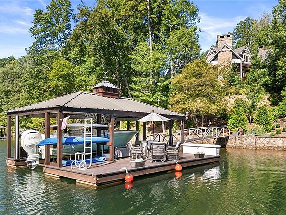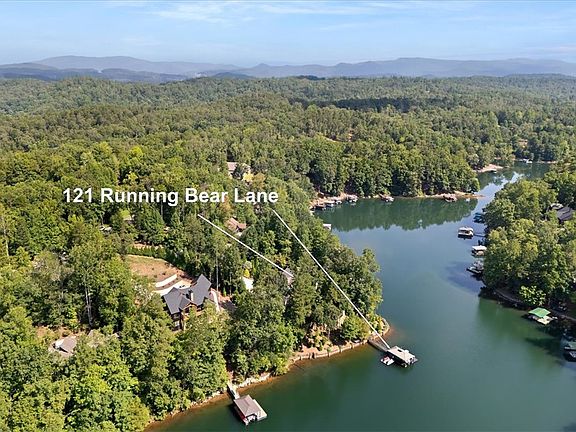 Welcome to 121 Running Bear Ln, a lakefront oasis offering privacy, early sunrise exposure with expansive lake views. Perched on nearly a full acre, this home was built in 2007 and fully renovated in 2024. Inside, an open-concept design showcases vaulted ceilings, tongue-and-groove trim, and a wood-burning fireplace. The chef’s kitchen features granite countertops, custom cabinetry, and Wolfe & Sub-Zero appliances.Designed for entertaining, the property offers expansive outdoor living with a full outdoor kitchen, grill deck, and deep-water dock for year-round enjoyment. Every detail has been thoughtfully updated, including the septic drainage system, 3 Bryant HVAC units, central VAC, and 2 water heaters. The Shallowford community has very limited HOA restrictions and reasonable fees of $1000 or less a year, this property is a rare opportunity to own a private retreat with endless lake views. Step inside and the soaring great room immediately draws you in, with its tongue-and-groove vaulted ceiling, timber beams, and a towering stone fireplace that anchors the space. A custom chandelier glows warmly overhead, with soaring windows that frame lake views that never get old. The kitchen was designed for both the chef and the entertainer—granite counters, custom cabinetry, SubZero fridge, Wolf cooktop, Bosch dishwasher, and double ovens—all flowing seamlessly into the dining and living spaces.The primary suite on the main level is a true sanctuary with a spacious bath, custom closet, and its own peaceful views. Tucked away upstairs, guests will find a private en suite bedroom providing a fully private guest quarters experience. On the terrace level, laughter carries from the rec room with its wet bar, wine cooler, billiards table, and another fireplace—the perfect spot after a day on the lake. Host additional guests in the two private en suite bedrooms on the terrace level with a convenient half bath in the rec space. Currently used as an office, an additional bedroom could convert to a suite with plumbing already in place in the closet. But the real story here unfolds outside. A covered PVC deck, motorized screen porch, and stone patios invite long evenings of dining and conversation. Four fireplaces (2 inside, 2 out) mean the glow of a fire is never far away. A short walk down landscaped paths leads to a mahogany-decked dock with boat lift, PWC floats, new ladder, and even its own fridge for lakeside convenience. After a day on the lake, relax in the 6-seat hot tub overlooking the water from a private side patio. Every detail has been updated—new roof, standing seam accents, drainage, irrigation, paint, appliances, HVACs, septic, water systems, garage storage, and more. Even the little touches matter, from motorized screens to custom shelving, to the irrigation that keeps the grounds lush year-round. This isn’t just a house on Lake Keowee—it’s a turnkey lifestyle, ready from day one. A place to gather family and friends, to host long weekends and holiday traditions, to watch sunsets from the dock, or simply to escape. Every corner tells a story of lake living made effortless.