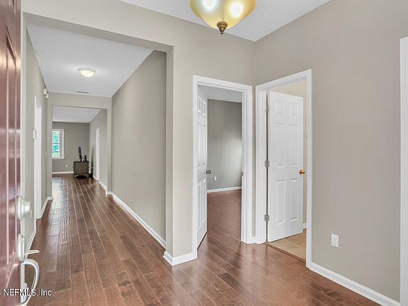 **Open House 8/26 2:30-4:30pm and 8/27 1-3pm** Come see this beautiful home and everything that St. Johns Forest has to offer. 3 car garage. 4 bedrooms! Primary bedroom has a picture perfect view of the water! Secondary bedroom with large walk in closet. Great open floorplan with kitchen/living/dining combo that is made for entertaining, overlooking the water and oversized lanai. Granite countertops in kitchen. Easy maintenance hardy board siding. Natural gas community. water softener, newer appliances and w/d, CDD bond PAID OFF, only operations and maintenance portion remain. High speed internet included in HOA. Resort style community pool, roller hockey rink. basketball courts, tennis courts, gym, soccer field and playground!