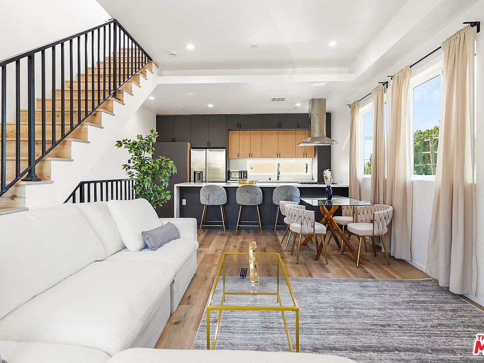Standing three stories over a celebrated neighborhood in Ramparts Village, this ambitious 1,353 sq ft home is the quintessential Modern Residence. Delivering the utmost in luxury and exclusivity, this three-bedroom, two bath Townhome gazing out across the dazzling Hollywood landscape presents a rare new construction homeownership opportunity. A truly astonishing accomplishment of engineering and architecture, the open-plan layout blends premium craftsmanship with exceptional finishes.Exhibiting a stunningly executed design, every inch of this sumptuous space has been meticulously crafted for sophisticated living. Dominated by khaki-hued hardwood floors and crowned by elevated ceilings with integrated lighting, the elegant living room and dining room are vibrant entertaining venues. Rich in high-end finishes and fixtures, the kitchen is a first-class workspace. Characterized by a superior standard of quality, no expense was spared to achieve this epicurean's delight. Amenities include chic matte cabinetry, professional series appliances, waterfall island and double pantry. Complemented by a beautifully appointed bath, the primary suite dominates the lower level. Outstanding accommodations continue in the additional guest rooms, which can efficiently function as home offices or fitness areas. A full-width roof deck is positioned to capture miles of twinkling L.A. lights. Bike storage, a rock garden, secure parking and keyless entry provide the finishing touches. The enviable location takes full advantage of its proximity to thriving business and cultural scenes in adjacent Silverlake, Koreatown, and Westlake. Dodger Stadium and L.A Live can be reached in 10 minutes, while upscales boutiques along The Grove's promenade are just a 19 minute commute.