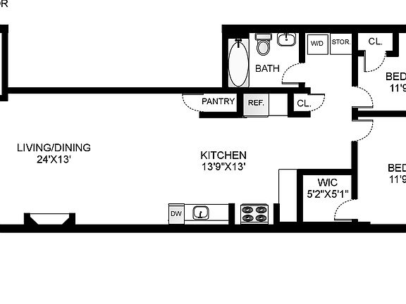 Central heating and coolingIn-unit laundryTons of closet spaceOpen kitchen with dishwasher