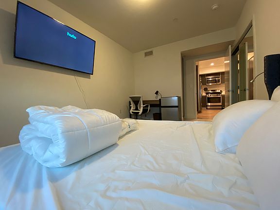 The apartment comes fully furnished, so just bring your clothes and personal items. Everything else will be provided for you. The kitchen is fully equipped with all of the necessities, including appliances and tableware. Your bedroom also comes ready for your arrival, with a brand new bed sheet set, comforter, and towel set upon move-in.