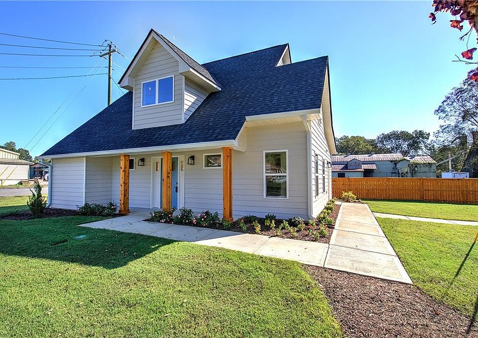 Welcome to this brand-new, modern farmhouse just steps from downtown Adairsville—offering the perfect blend of charm, convenience, and contemporary style. This thoughtfully designed home features 3 spacious bedrooms, including a main-level owner’s suite with a walk-through closet that leads into a full bath with a double vanity and built-in shelving for ample storage. Upstairs, you’ll find two generously sized guest bedrooms, each with its own walk-in closet, sharing a full bathroom also with built-in shelving for towels and toiletries. A cozy mezzanine loft area situated by a large window provides the perfect space for a home office, reading nook, or creative studio. The living room features vaulted ceilings and multiple windows that flood the space with natural light, creating a bright and open atmosphere the moment you walk through the door. The kitchen is complete with all stainless steel LG appliances, including a massive refrigerator, quartz countertops, sleek cabinetry, and a pantry for extra storage. The flexible layout between the kitchen and living room allows for a dining area or the addition of an island with bar seating and more storage, depending on your needs. Conveniently located on the main floor, you'll find a side-by-side electric washer and dryer near the side entry, plus a half bath easily accessible from both the kitchen and living room. Step outside to a freshly sodded Bermuda lawn, bordered by a privacy fence on three sides, with cypress trees lining the street for added natural screening. A double driveway offers plenty of parking, and the covered front porch is perfect for relaxing with a morning coffee or evening conversation.
