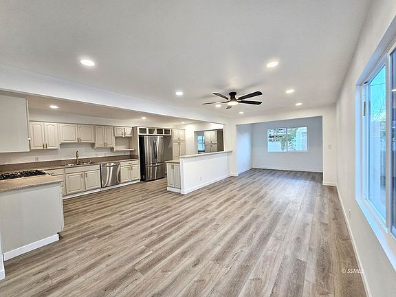 4 Bed/ 3Bath Updated Home on 2000 Sqft. Unparalleled Kitchen cabinet space and huge L-shaped living room - Four spacious bedrooms and 3 fully remodeled bathrooms. All new flooring, appliances, and fixtures. Two-car attached garage, fenced front yard. Updated dual-pane windows. New modern light fixtures, new A/C. Wooden storage shed in the backyard. Back alley access through the double backyard gate. Mature trees. Large 0.18 ac lot. Walking distance to shopping, restaurants, and the new Richmond Elementary School. Short drive to the Naval Air Weapons Station China Lake ( NAWS ). Great utility, function, and style! Check out the VIDEO: https://youtu.be/8bXzJyyx4x8?si=sU44vV4HowDvPhW6