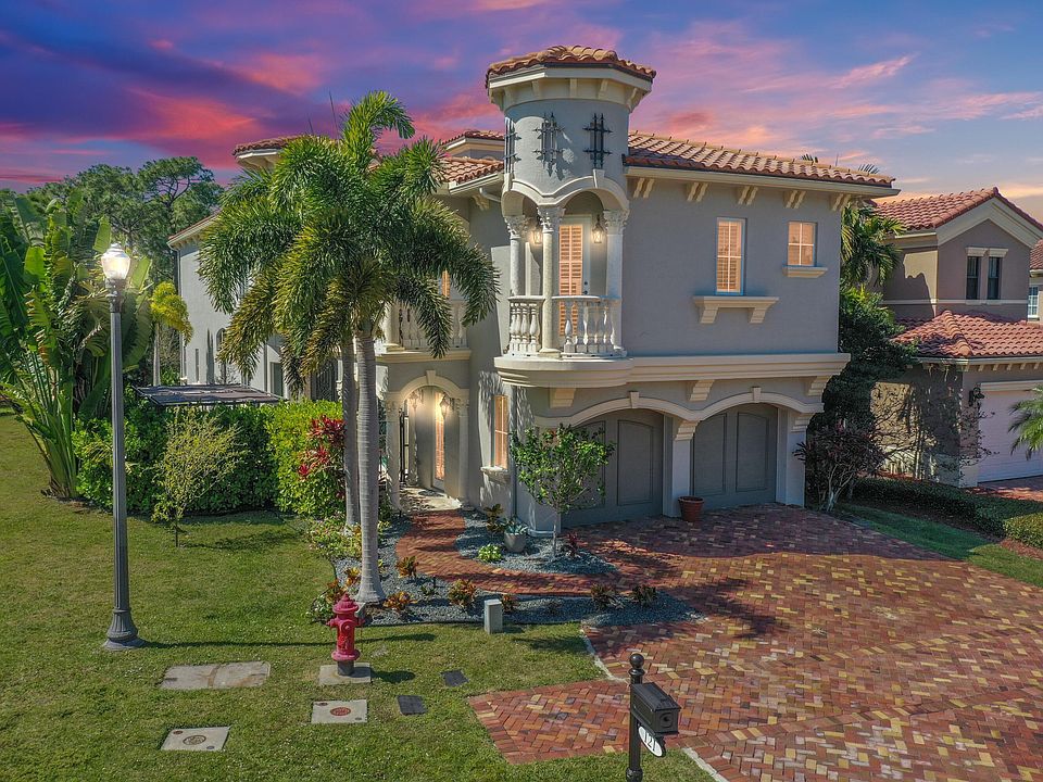 Welcome to your custom retreat in the Estate section of Rivella. Behind your private iron gate the stunning travertine heated pool area with water feature and outdoor kitchen connect the main house to the guest house, providing flexibility for visitors or extended family members and is the perfect backdrop for leisurely gatherings and alfresco dining. The main house features a magnificent two-story stone gas fireplace, 25' coffered ceilings, marble floors and plantation shutters. Spacious kitchen with 42' solid wood cabinets with soft close drawers & new 5 burner gas stove with downdraft. Spacious ground floor primary suite with stunning marble bathroom and private travertine patio overlooking the preserve. Second floor features an expansive loft with kitchen and 2 ensuite bedrooms w with walk in closets. This executive home is complemented by an attached guest house, providing additional accommodation options for visitors or extended family members with a spacious ensuite with separate living room & kitchenette. Hurricane impact windows and doors throughout both homes, ensuring peace of mind and security Surrounded by lush preserve behind the home allowing you to immerse yourself in the natural beauty of the surroundings