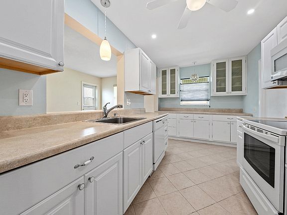 Nicely updated expanded Regis Model with total 1527 under air. Home has both a Florida room plus family room. Family room could be used as a third bedroom as there is a closet.Neutral tile thru-out. Kitchen cabinetry all replaced. Extra cabinetry with additional counter space. Updated appliances. Roof Replaced 2013. Front porch has insulated roof.Both baths have replaced vanities, commodes and electrical fixtures. Windows replaced and in the family room only there is impact windows. Plantation shutters in both bedrooms and living room. Front patio faces east for those gulfstream breezes. Walk distance to clubhouse and pool. Free 18Hole Par 3 Golf. Paid up recreation lease in full. Minutes to ocean beaches, shopping and restaurants. Vacant for quick close.
