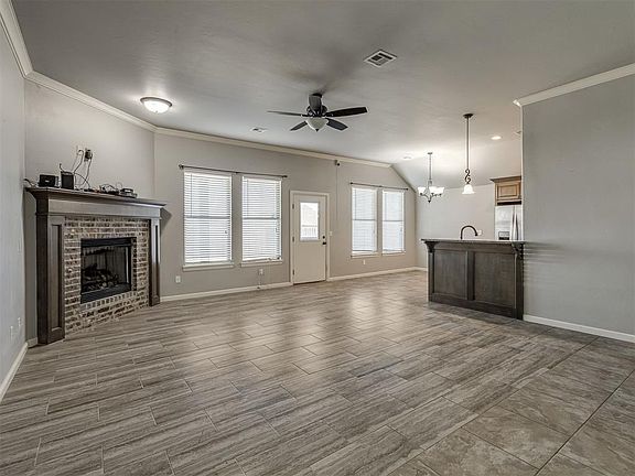 Welcome home to 121 SW 148th St, nestled in the highly-desired Moore School District! This well-kept home offers a bright and open kitchen, living, and dining layout—perfect for both everyday living and entertaining. The kitchen features a breakfast bar, pantry, and abundance of cabintry. The spacious living room invites you in with its cozy gas fireplace and wood mantel. Enjoy the privacy of a true split floor plan, with the primary suite tucked away and offering double vanities and a generous walk-in closet. Step outside to your large covered front and back porches, full fencing, and an in-ground storm shelter for peace of mind. Move-in ready and wonderfully comfortable—this one checks all the boxes!