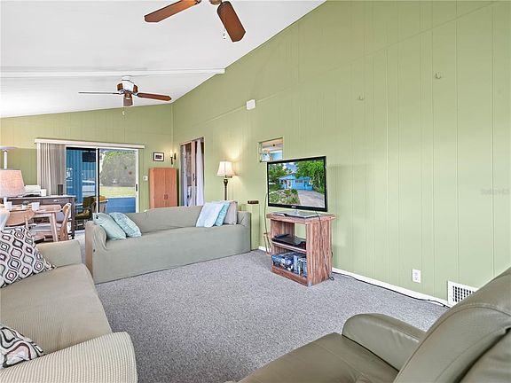 Whoa, this sounds too good to be true - but it is! Well maintained and furnished, this one bedroom home is located in the premier 55+ gated community of Saddlebag Lake Resort, where you OWN the land. The ground floor main living area includes a spacious living and dining room combination, complete with a sleeper sofa for your overnight guests and an electric recliner for maximum t.v. watching comfort. Upstairs you'll find a very functional kitchen, a breakfast nook, a cozy bedroom, a recently updated bathroom and a sizable laundry room. Walk through the sliding glass door downstairs and you're in the large screened porch where you'll enjoy entertaining friends, plus there's an adjacent storage shed. Surrounding trees provide welcome shade and afford the home added privacy, and there are two driveways so you'll always have a place to park. The home has recently been inspected and has been determined to have all the proper tie-downs. The low HOA includes your water, sewer and trash pick up, as well as use of all the amenities, including a sparkling community pool; hot tub; tennis and pickleball courts; horseshoe pits; a rec room with fitness equipment, pool tables and saunas; shuffleboard courts; a dog park, driving range and a library. Of course, you'll have access to Saddlebag Lake, where the fishing is great! Not to mention the clubhouse where you can participate in planned activities, and a beach house that you can use free of charge for private parties, just reserve it. There's truly something for everyone here, so don't wait another minute, call to schedule your private tour now!