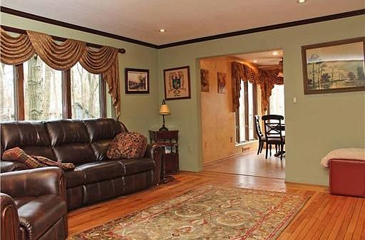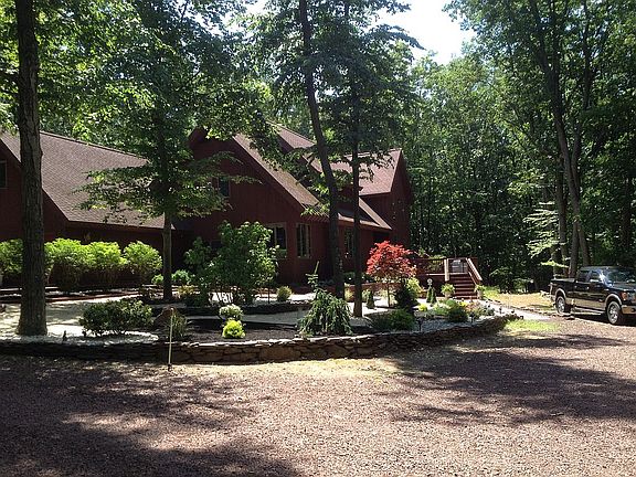 HUGE CUSTOM MAHOGANY SIDED CONTEMPORARY HOME, VAULTED CEILINGS, POCKET DOORS, WOOD FLOORS, LARGE RMS, GIGANTIC GAS FIREPLACE, HUGE 1,200 SQ FT COMPOSITE DECK W/ stone accents, BBQ and outdoor sink/fridge, 2 CAR GARAGE, EXTRA LONG DRIVEWAY WITH ADDED PARKING AREA, 3+ ACRES OF WOODED LAND, LARGE HIGH CEILING 1,800 SQUARE FOOT BASEMENT W/ WORKSHOP AND SEPARATE STORAGE ROOM. STUDIO APT W/KITCHENETTE & BATHROOM OVER GARAGE. ENJOY THIS PRIVATE & SECLUDED WOODED RETREAT!! NEW ROOF AND TRIM ADDED IN JUNE 2020.