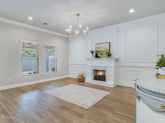 Experience carefree living in this beautifully designed zero-lot line home with a low-maintenance yard! This home is packed with upgrades, including stainless steel appliances with a gas range, framed mirrors in all bathrooms, window blinds, a custom cabinet package, and an upgraded backsplash. Throughout the home you'll find upgraded light fixtures, and accent wainscoting in the living room, complete with a detachable fireplace in the living room.The primary bathroom boasts electrical upgrades and is bidet-compatible for added luxury, while the spacious master walk-in closet provides convenient access to the laundry room. The custom closet in the mudroom offers even more storage solutions. Energy-efficient features like Low E tilt-in windows, a tankless gas water heater, a Lennox HVAC system, and central gas heating ensure comfort and efficiency.Outside, you'll find pavers with gravel along the side and back of the home, a gas grill outlet on the covered patio, a storage shed, and a double-sided fence for extra privacy. Additional highlights include 3cm granite countertops with undermount sinks, a large walk-in pantry, bronze plumbing fixtures, and wood plank tile throughout the entire home. This home offers the perfect blend of style, comfort, and functionality!