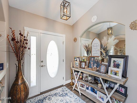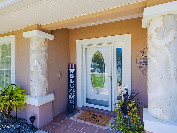 4.5 Percent Assumable Mortgage!! High & Dry!! 3BR/2BA/2CG split plan home with peaceful waterfront views, indoor laundry, and several custom features. Originally built as the builder's personal residence, this home showcases architectural niches, crown molding, trey ceilings, extended soffits, and a huge 12x30 screened porch. Recent updates include a 2024 roof with gutters, new quartz kitchen countertops/sink, garage door opener and springs, and a new granite vanity top/sink in the guest bath. In 2023, new A/C & heating system, water heater, exterior paint, water-saving toilets, and an updated primary bath granite dual sink vanity. In 2019 hardwood floors, complete interior repaint, and new ceiling fans installed. The garage was just finished with an epoxy speckled floor and a new garbage disposal was installed. You're minutes to the beach, Halifax River, parks, shopping, dining, and I-95/I-4. This home blends quality construction, comfort, and a prime location!