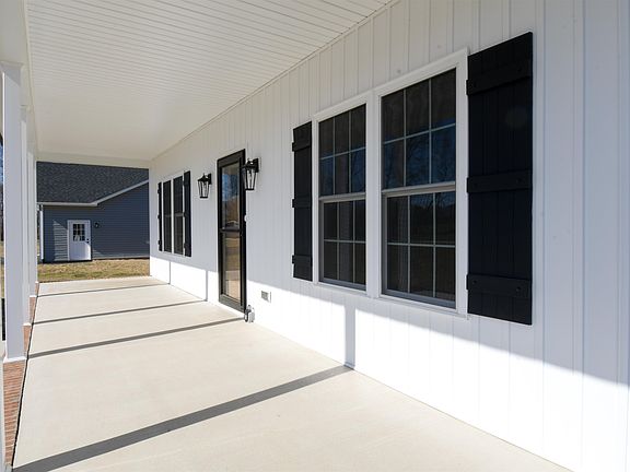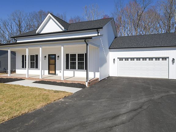 Farm House dreams come true in an affordable budget and new construction. White board and batten front, wood grain stained fiberglass front door and even black gutters to pop it off. Open floor plan welcomes you with real oak flooring custom cherry kitchen with granite countertops. Split bedroom floor plan. Double car garage. Peaceful rear porch with Trex Decking.