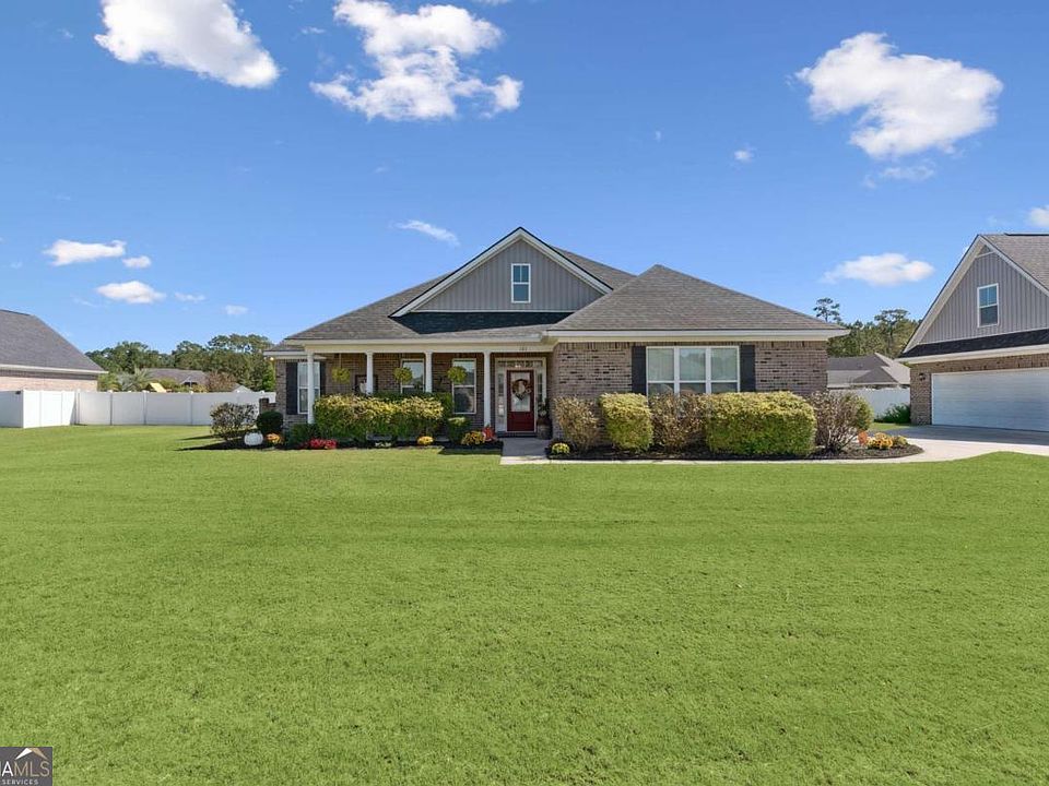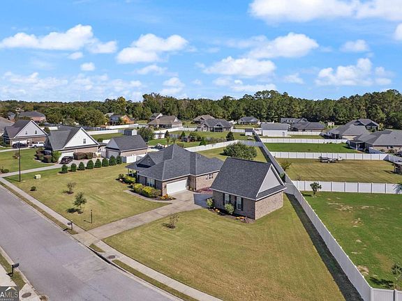Discover space, style, and comfort in the heart of the highly sought-after Honey Ridge community. This 4-bed, 2-bath, 2,100 sq ft home sits on just under an acre, offering the perfect blend of small-town charm and modern living. Built in 2019, the home has been lovingly maintained and thoughtfully upgraded. The bright, open floor plan connects the living, dining, and kitchen areas seamlessly ideal for both everyday life and entertaining. The chef's kitchen shines with granite countertops, stainless steel appliances, pendant lighting, and a massive center island perfect for gathering. The spacious living area features modern flooring, abundant natural light, and French doors that open to the expansive backyard. Outside, enjoy your own private retreat, the fully fenced yard offers room to play, garden, or even add a pool. The second detached garage includes an upstairs loft area ready to be finished perfect for a home office, in-law suite, or guest apartment. Located in one of Guyton's most established and mature neighborhoods, Honey Ridge offers community amenities including a sparkling pool, freshly redone pickleball and tennis courts, and a welcoming, family-friendly atmosphere. With its generous lot, move-in-ready condition, and ideal location just a short drive to Rincon and Pooler, this home checks every box for peaceful suburban living with easy access to city conveniences.