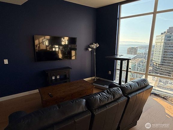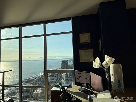 This 33rd floor home provides stunning, unobstructed and protected NW facing views of the the Sound, the Olympics and the Space Needle. Beautiful oak hardwood floors throughout, custom wood cabinetry and floor to ceiling windows to take in those iconic PNW sunsets. Well designed floor plan provides a large bedroom and an ever larger living room, with 10 foot ceilings. Experience resort style living with state of the art fitness center, yoga studio, expansive roof top lounge w/ indoor and outdoor gathering spaces, pet run/spa, 24/7 concierge and guest suite. One block from the Pike Place Market and near all of Downtown Seattle's other amenities.