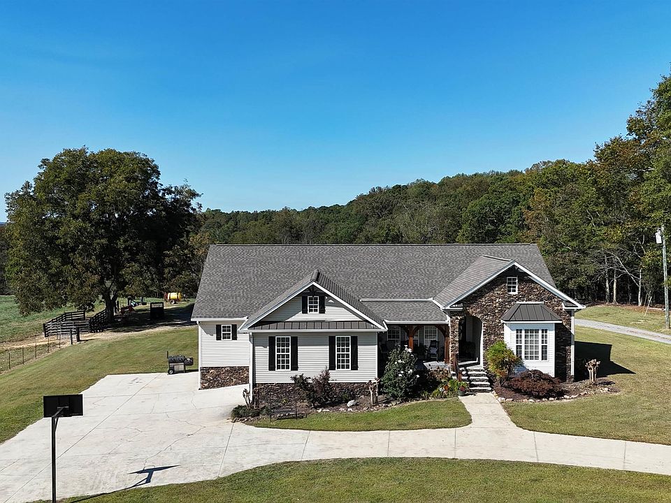 144-acre working cattle farm featuring a stunning 5,535 sq. ft. home. The property includes 4 barns, fenced pastures, and open fields — ideal for livestock, equipment, or hobbies. Slab Creek runs through the property year-round, providing a reliable water source and adding to the natural beauty of the land. Enjoy peaceful country living, incredible views, and room to roam. A rare find with endless potential — the house can also be purchased separately with 10 acres