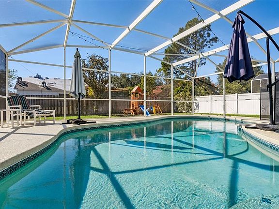 Enjoy the best of Florida living in this 4-bedroom home with a screened-in heated pool, spacious fully fenced backyard, and flexible layout just 12 miles from Disney. Major updates include a 2019 roof and PAID-OFF solar panels, providing energy efficiency and peace of mind. The bright, open layout features generous living areas ideal for entertaining, plus a versatile bonus room that can serve as a 5th bedroom, office, or playroom. The screened pool area includes a child safety fence and overlooks the huge backyard for added outdoor enjoyment. Located in the established community of Sunridge Woods with a low annual HOA of only $300. Whether you’re searching for a primary residence, vacation home, or short-term rental investment, this property checks every box with its ideal location near shopping, dining, and major highways.
