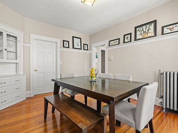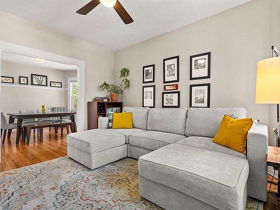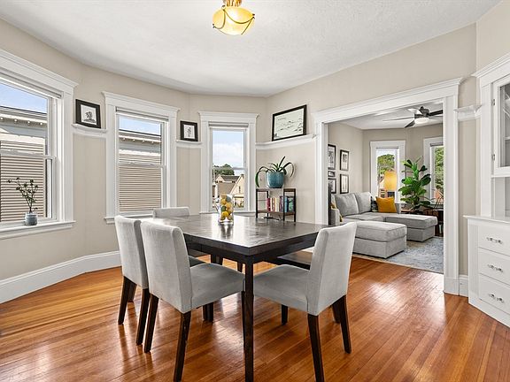 Charm and convenience await you in this sun-splashed top floor 3-bedroom Roslindale Village condo. Through the front door you are greeted by open living and dining rooms with bay windows and period details including corner china cabinet and plate rail. From the tree-top deck relax and watch the sunset on a warm summer evening. Renovated eat-in kitchen with white cabinetry, quartz countertops, tile backsplash, and stainless-steel appliances. Completing the space are 3 bedrooms offering flexibility and privacy for sleeping and office/exercise spaces plus an updated full-tile bathroom. Additional features include in-unit laundry, ceiling fans, fir and tile floors, basement storage room, off-street parking, and common back yard. Nearby vibrant Roslindale Village with its independent shops & restaurants, farmers market, commuter rail, and so much more.
