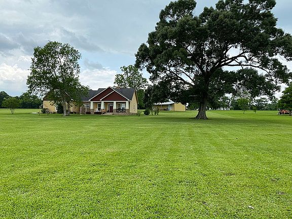 Resting on 5-acres of land in the gated Raven Hills Ranch, this stunning 3-bedroom, 2-bathroom home features wood flooring, a stone-surround wood burning fireplace, formal dining room, game room, and open concept great room with vaulted ceilings. Enjoy warm evenings out in the sprawling green yard, complete with a sparkling pool, two covered patios, and a 30x40 workshop. The island kitchen boasts granite countertops, a stone backsplash, double oven, breakfast bar, and pendant and undercabinet lighting. The spa-like primary suite is complete with a tray ceiling, dual walk-in closets, a vanity with knee space, and a shower. Located near U.S. 90 and Hwy 146, shopping and dining are only minutes away. Experience peaceful country living while still enjoying easy access to the city.