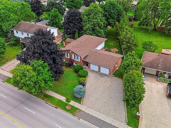 This upgraded & freshly painted 3+2 bed, 3 full bath home offers nearly 2,500 sqft of finished living space. Enjoy a triple-wide interlock driveway, double garage, and a fully fenced yard with fire pit and hot tub. Inside features pot lights throughout, open-concept living, California shutters, formal dining, and newer appliances. The primary bedroom includes a full ensuite, and updated second full bathroom on main level . Lower level has a cozy fireplace, 2 bedrooms, full bath, laundry, and storage. Steps to the Hardy Trail, seconds to Hwy 403, close to all amenities, on bus route, and in the school district (James Hillier PS). Roof (2018), Furnace/AC (2014). Move-in ready – book your showing today! Hot Tub As is.