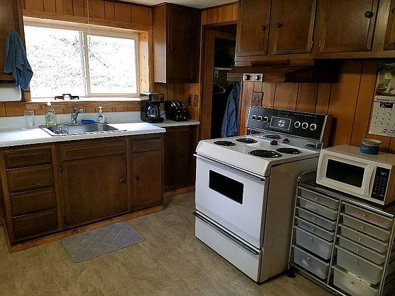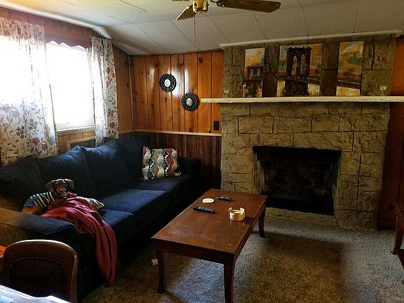 Small Log cabin Built in 1950's compete remodeled completed 10/30/18 all new flooring, 5 windows ,,French drain doors ( bathroom is large but in Cellar )New Roofs ,newly painted insulated .furnace and hot water tank are less then 10 years old . Oil heat 2 acres large1.5 stall GARAGE shed Very private . Man that built house was small ceiling height in cellar more suited for someone under 5'11" room sizes 12x12 living room 10x12 kitchen bedrooms 10x10 and 12 x 7 City sewage and water . Has mineral right income FYI a renter in house , Must show 20% in bank to view house