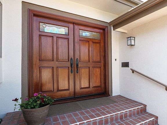 Other features of the property include: central heating and A/C, stained glass inserts in the mahogany front double doors and leaded glass door to the primary bedroom/bath area, marble fireplace surround and hearth with cherry wood mantel in the living room, Roman pleated window shades, Cat 5 ethernet with central control area in the primary bedroom closet, natural quartzite tile in the entry and the bathrooms, solid core interior doors, California Closets, vaulted ceilings in the entryway, living room and primary bedroom, den/family room with built-in speakers (which also exist in the kitchen and primary bedroom areas), large walk-in master closet, gorgeous primary bathroom with an indoor spa and much, much more. There is even an outdoor built-in spa with a lounger inside...get that wonderful massage after a long day's work or a strenuous sports activity. Home had its foundation retrofitted for earthquake in 2017. There are two outdoor entertainment areas that are serene and peaceful and are accessed by Anderson sliding doors in four rooms. Short walk to the Riviera Village, El Retiro park and Torrance Beach