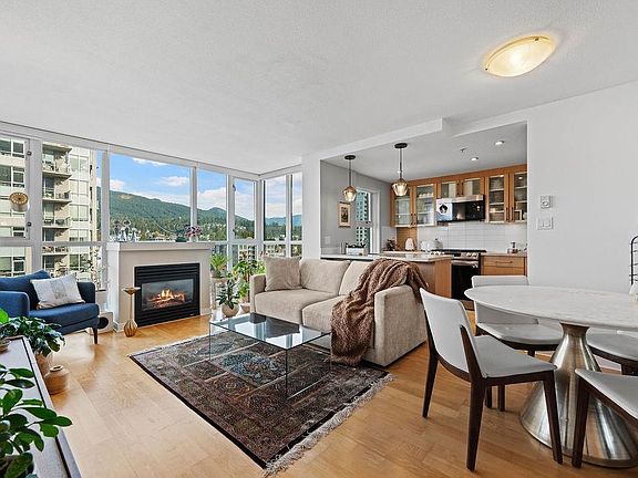 Welcome to THE SILVA! This bright 1-bedroom + den home on the 10th floor offers beautiful CITY, MOUNTAIN, and LIONS GATE BRIDGE VIEWS through FLOOR-TO-CEILING WINDOWS. The kitchen appliances, washer/dryer, and blinds were UPGRADED in recent years, giving the home a fresh, well-cared-for feel. Enjoy a SPACIOUS LAYOUT with a walk-in closet, cozy gas fireplace, and a private balcony for relaxing. Comes with 1 parking stall and 1 storage locker. This is all about LIFESTYLE—an easy, WALKABLE location in Central Lonsdale, steps to shops, cafés, and transit, in a sought-after CONCRETE BUILDING with great amenities.