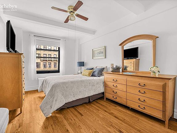 Upon entry into this lovely fifth floor home, you’ll be greeted by a welcoming foyer, with a huge, ceiling high, double closet. Just past the foyer is the galley kitchen across from which there is a dedicated dining/office area. Around the corner is the large, sunny, south-facing living room, spacious enough to accommodate couches as well as a dining table. The windows welcome abundant light and the hard wood floors throughout this home have been lovingly maintained and are in great condition. The primary bedroom is exceptionally large and sun-filled, also south facing, and has an enormous walk-in closet. It also has an updated en-suite bathroom and a ceiling fan. The second bedroom is equally large, also with a ceiling fan, and a huge walk-in closet. It, too, has an updated en-suite bath.