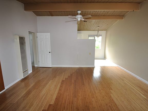 Cozy havenGleaming hardwood floorsInviting eat-in nookEssential appliancesSpacious bedroomsHigh vaulted woodbeam ceilingsCeiling fans