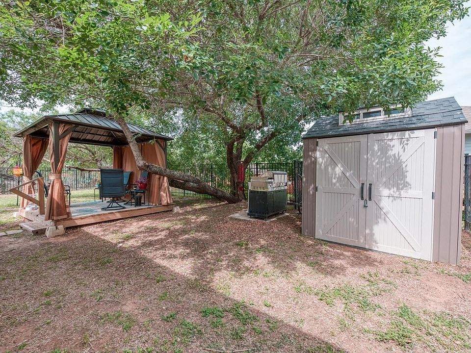 Spacious extra lotWarm inviting spaceNatural lightShop lightsOversized garageMetal gazeboExtra lot