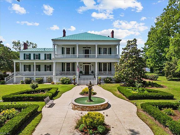 Perched atop a bluff with panoramic views of Edenton Bay, Pembroke Hall is a premier example of Greek Revival architecture and is listed on the National Register of Historic Places. This iconic 2.53 acre estate in the heart of Edenton's historic district is surrounded by private gardens and just steps from downtown and the waterfront. Grand center halls on both levels open to double-tiered porches with views of the bay and King Street. Inside, you'll find soaring ceilings, intricate plasterwork, hand-carved moldings, floor-to-ceiling windows, and eight fireplaces with unique marble mantels. Thoughtfully updated and meticulously preserved, Pembroke Hall offers timeless elegance, rich history, and architectural integrity, an extraordinary opportunity to own a piece of North Carolina's heritage.